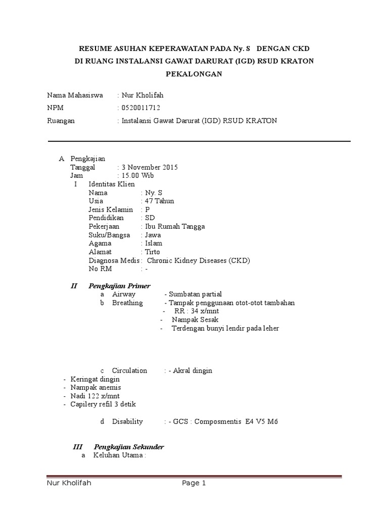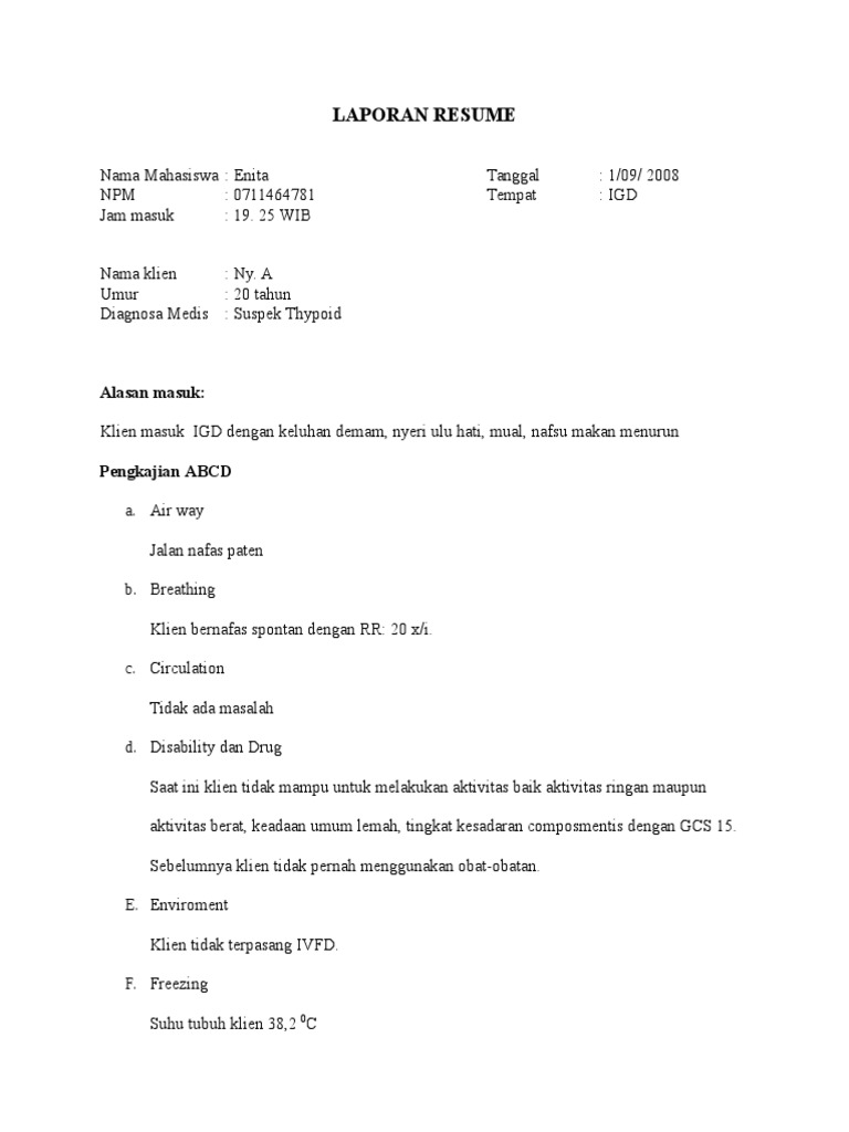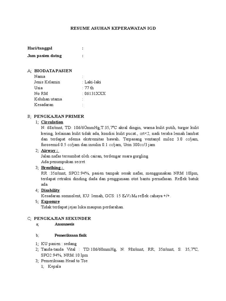 Contoh Resume Igd Dan Lk Icu Pdf Document