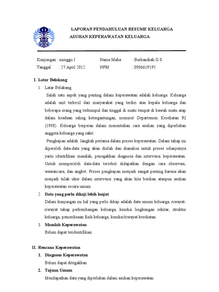 Laporan Pendahuluan Resume Keluarga