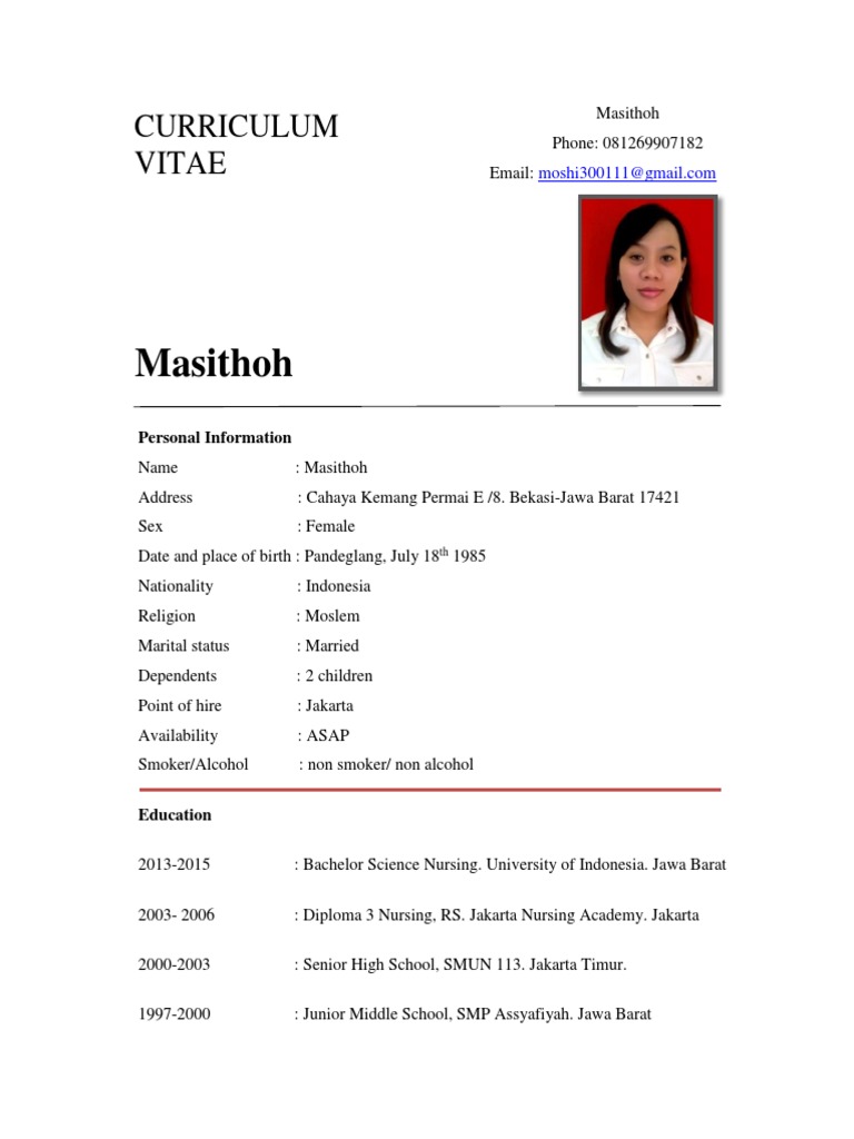 Contoh Curriculum Vitae Cv Bahasa Inggris Perawat Nursing