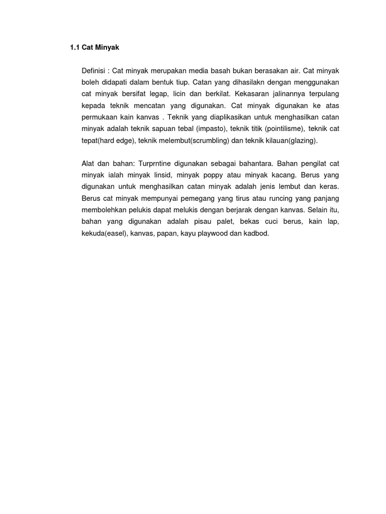 Pendidikan Seni Visual Blog Cat Minyak Alatan Dan Bahan