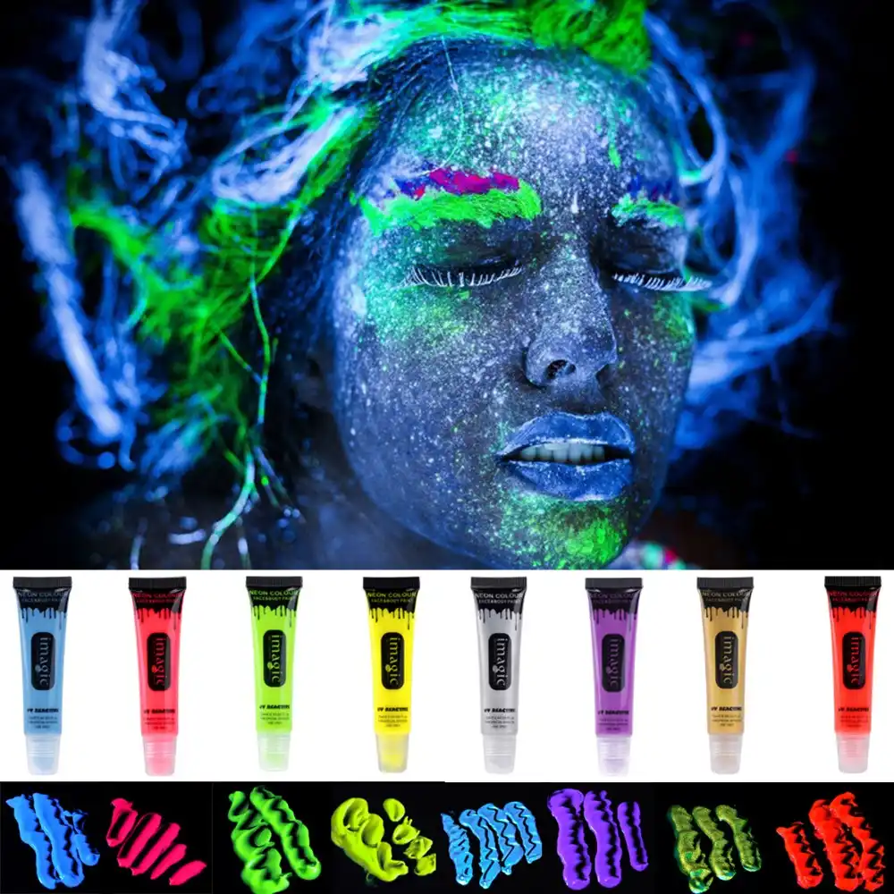 Warna Neon Wajah Tubuh Cat Uv Reagen Fluorescent Makeup Tato
