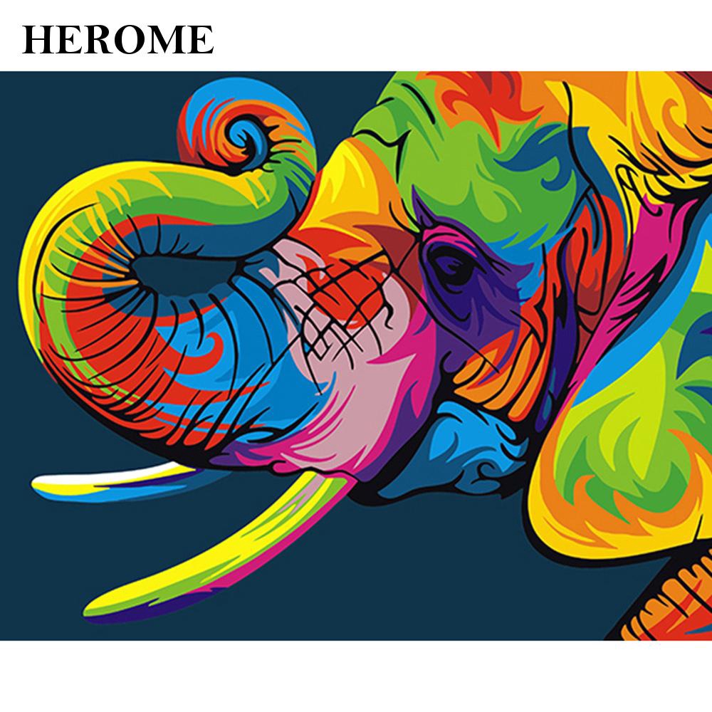 Diy Lukisan Cat Minyak Desain Gajah Neon Ukuran 40x50cm Untuk