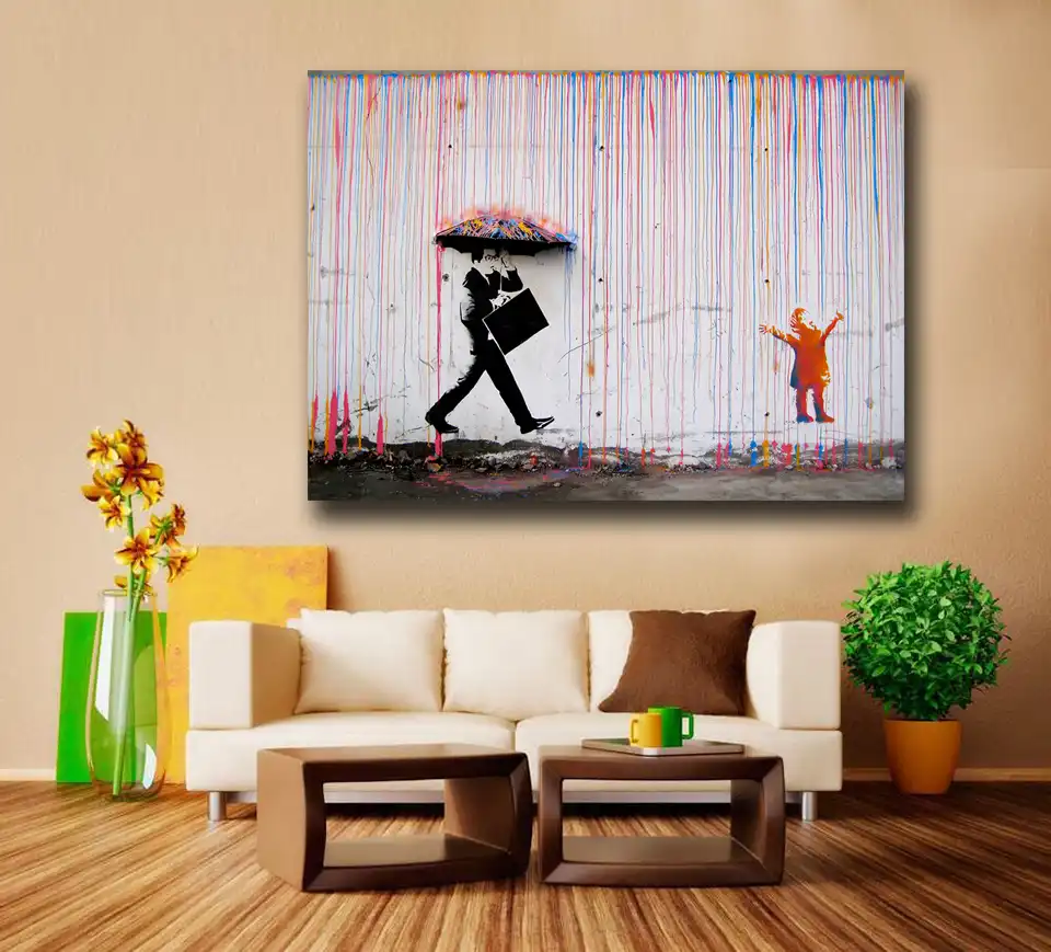 Wxkoil Graffiti Seni Abstrak Cmyk Hujan Kanvas Lukisan Untuk Ruang
