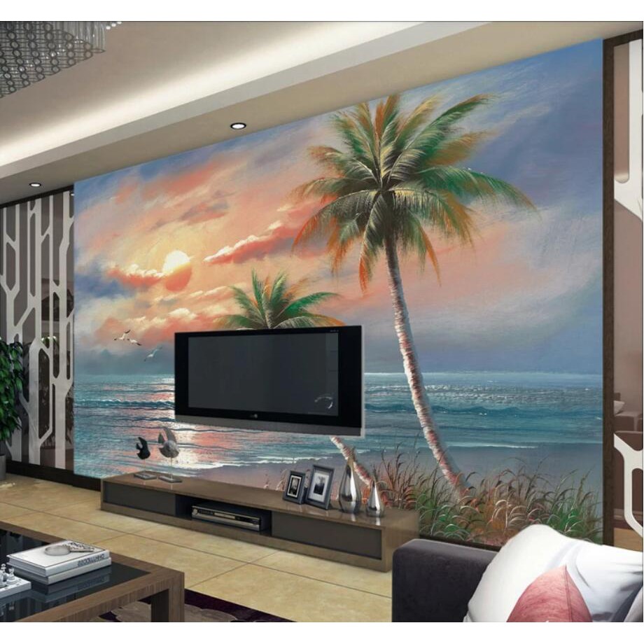 Lukisan Cat Minyak Desain Sunset Pantai 3d Untuk Dekorasi Ruang
