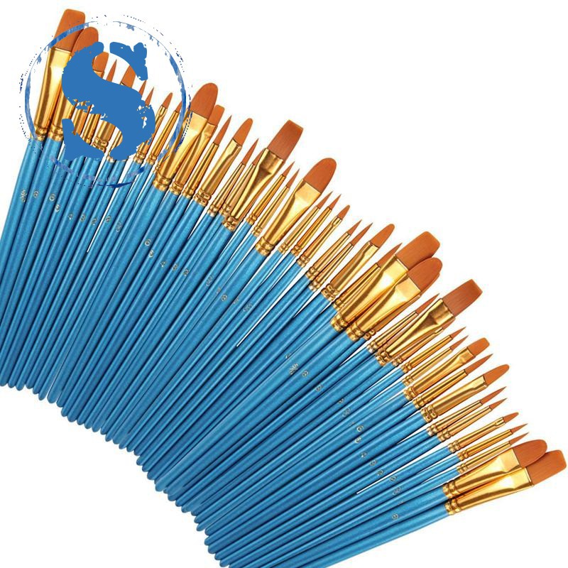 50 Pcs Kuas Bulu Nilon Warna Biru Untuk Cat Minyak Shopee Indonesia