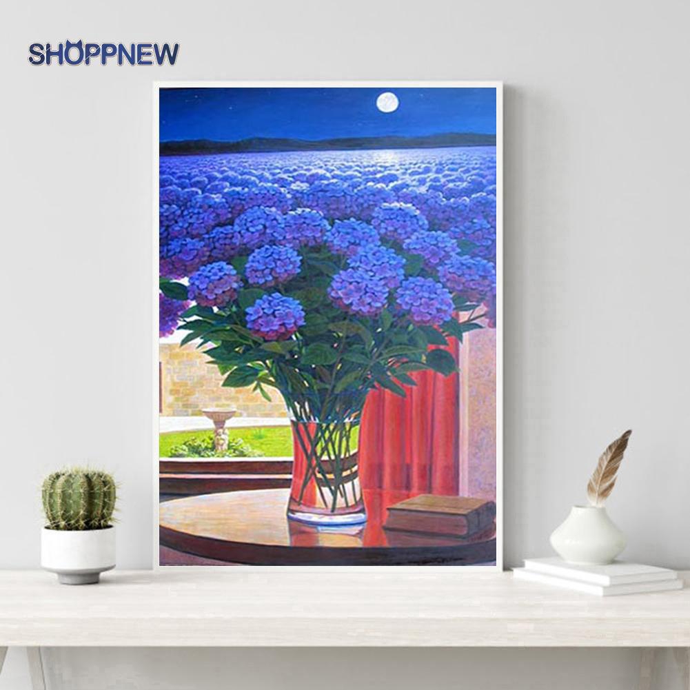 Lukisan Cat Minyak Desain Bunga Warna Biru Bahan Kanvas Model Diy