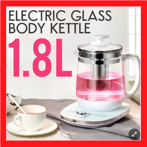 1 8l Electric Glass Body Kettle Health Pot Cerek Air Elektrik