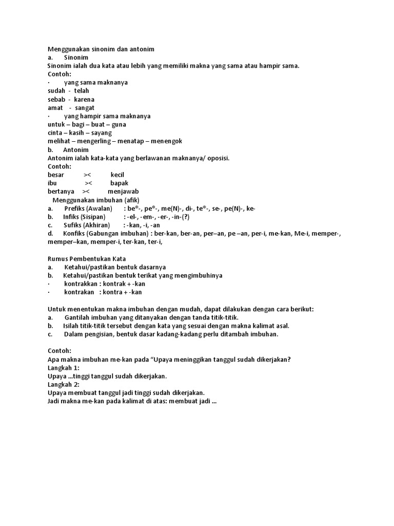 Contoh Perkataan Sinonim Dalam Rumusan