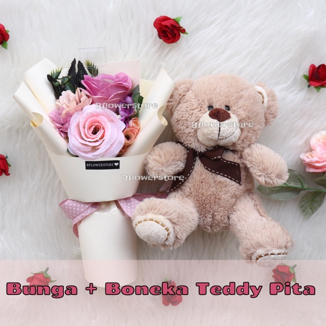 Pre Order Buket Bunga Artificial Boneka Teddy Bear Paket Hemat