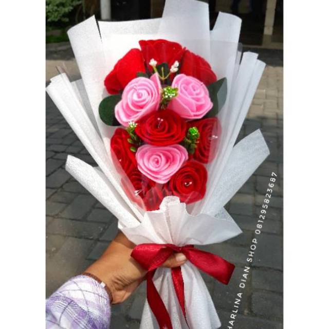 Jual Buket Bunga Mawar Cantik Flanel Untuk Hadiah Wisuda Ultah