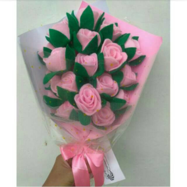 Buket Bunga Flanel Rose Bouquet Mawar Cantik Pink Merah Biru