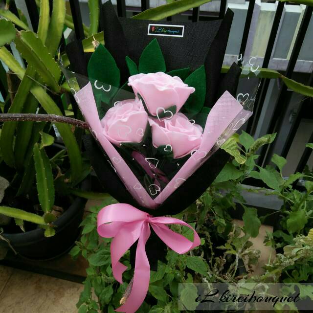 Ready Buket Bunga Mawar Black Pink Cantik Hadiah Wisuda Flanel