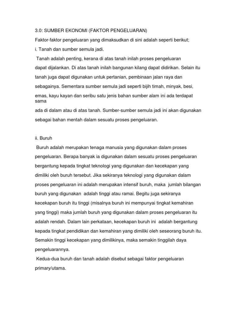 Jenis Faktor Pengeluaran Ekonomi