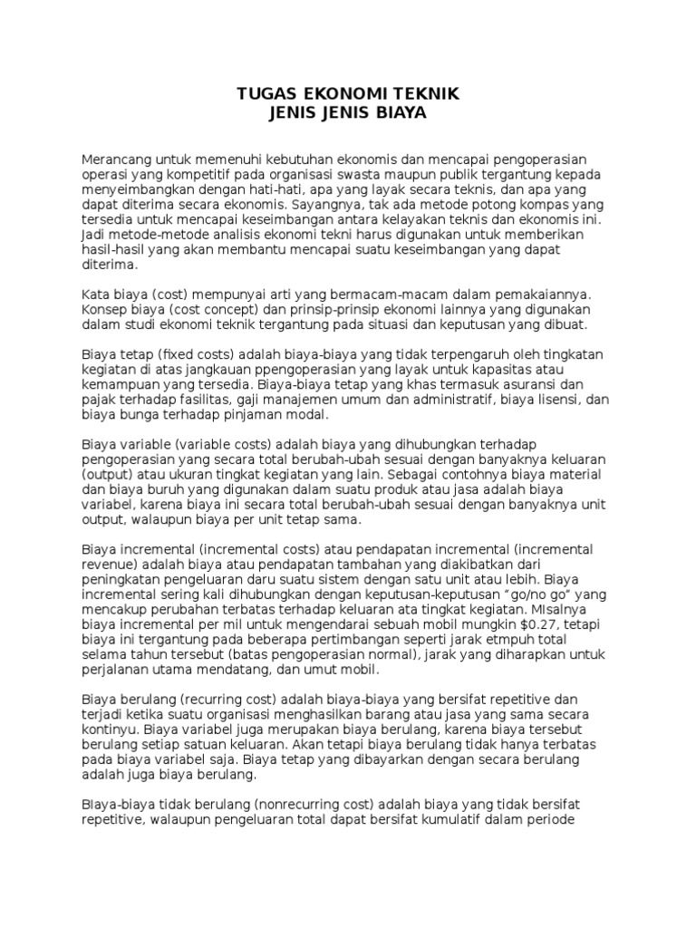 Jenis Pengeluaran Yang Tidak Termasuk Biaya Tetap Adalah