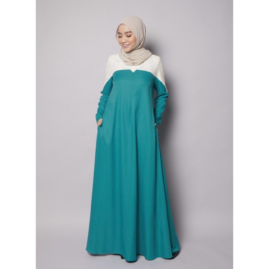 Nursing Friendly Lace Panel Jubah Long Dress Turquoise S M L Xl Shopee Malaysia