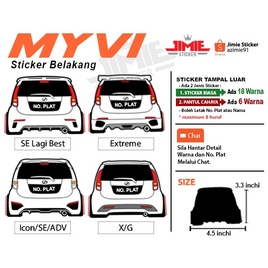 Sticker Kereta Sticker Belakang Kereta Perodua Myvi Custom Warna