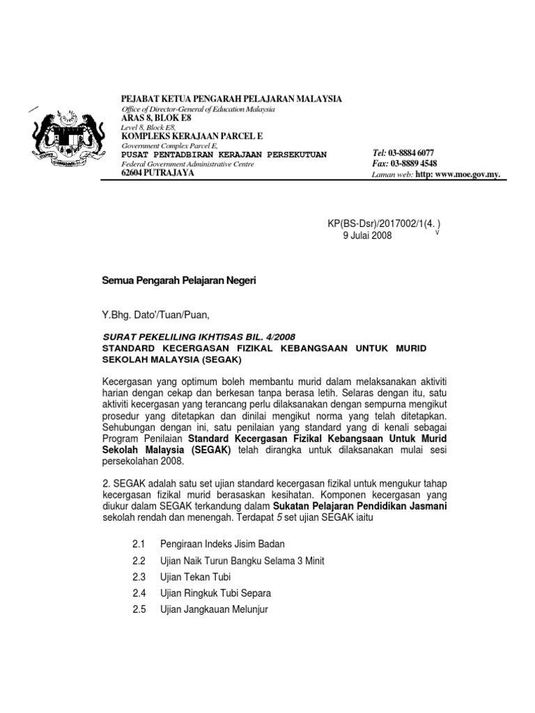 Https Www Moe Gov My Pekeliling 1941 Surat Pekeliling Ikhtisas Bilangan 2 Tahun 2016 Standard Kecergasan Fizikal Kebangsaan Untuk Murid Sekolah Malaysia Segak File