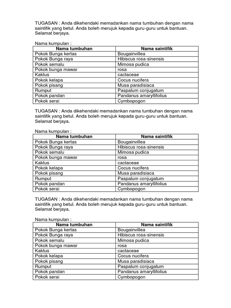 Nama Saintifik Tumbuhan Herba