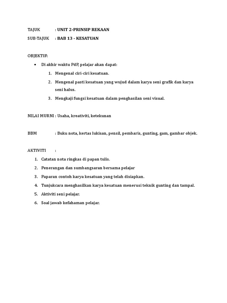 346000811 Pendidikan Seni Visual Tingkatan 1 Bab 14 Kesatuan Docx