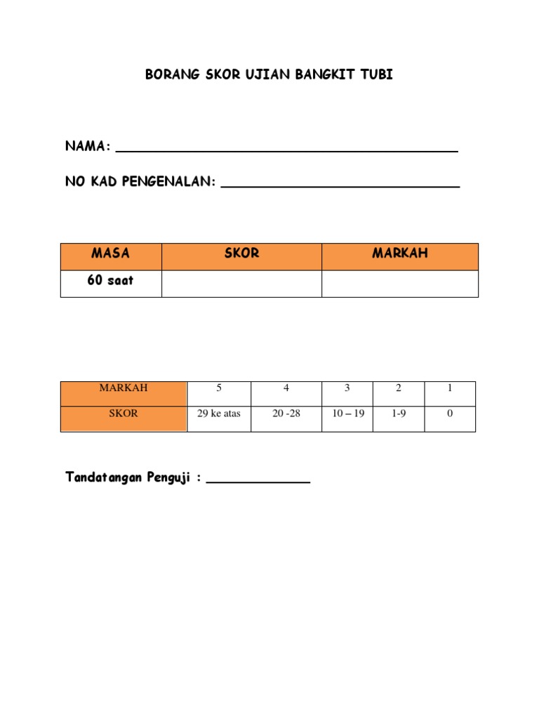 Borang Skor Ujian Bangkit Tubi