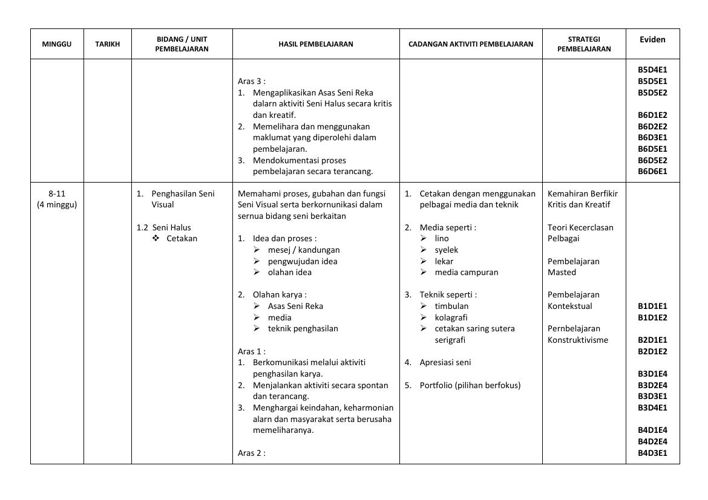 Bidang Penghasilan Dalam Seni Visual Borang Latihan