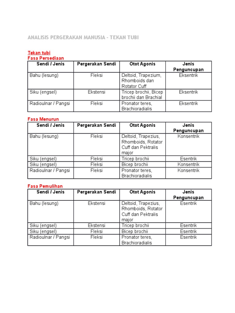 Analisis Pergerakan Manusia Tekan Tubi