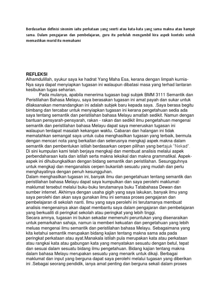 Berdasarkan Definisi Sinonim Iaitu Perkataan Yang Seerti Atau Kata