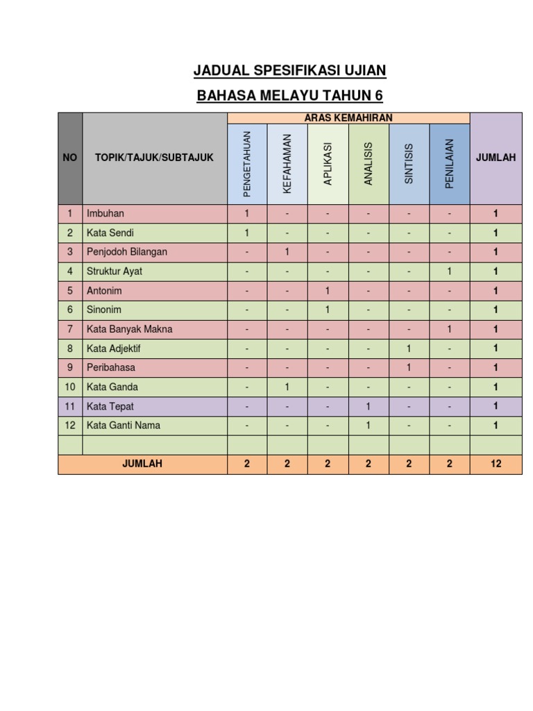 Jadual Spesifikasi Ujian