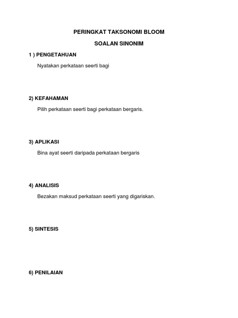 Soalan Sinonim Taksonomi Bloom