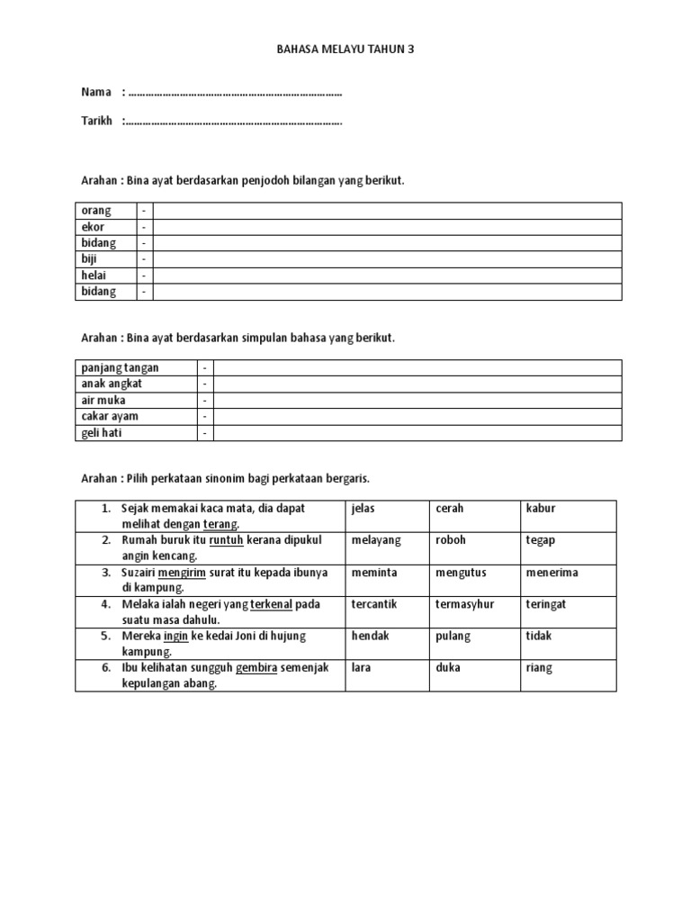 Bahasa Melayu Pemahaman Bahasa Melayu Pemahaman 1 Latihan 1