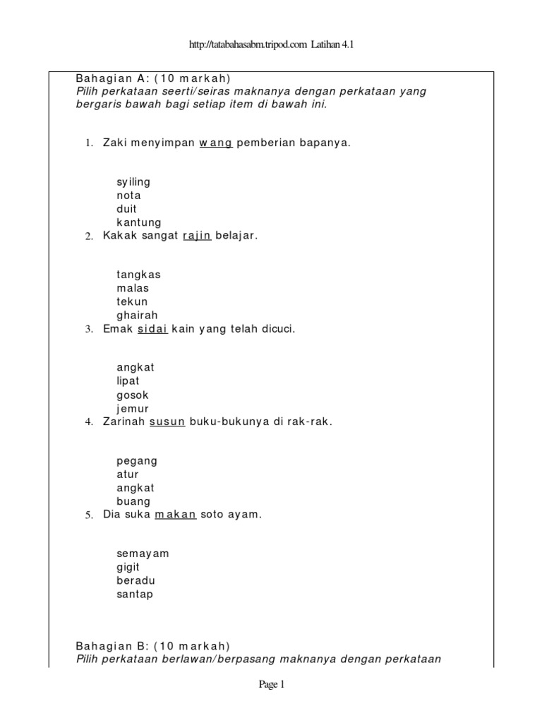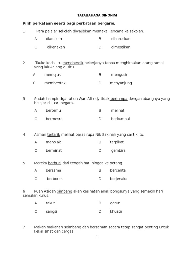 Beri Perkataan Seerti Atau Seiras Bagi Perkataan Yang Bergaris