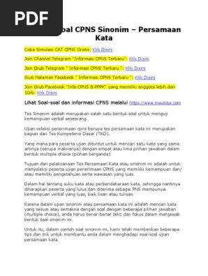 100 Contoh Soal Cpns Sinonim Persamaan Kata Mautidur Com