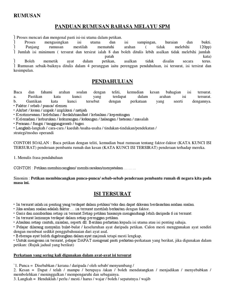 Panduan Rumusan Bahasa Melayu Spm