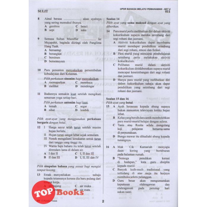 Pustaka Vision Koleksi Upsr 2020 Bahasa Melayu Pemahaman
