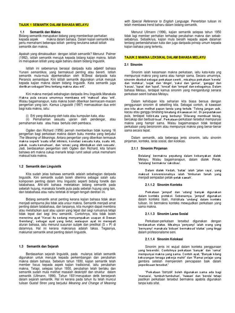 Isi Pelajaran Semantik Dan Peristilhan Bahasa Melayu Psgr Bmm3111 1
