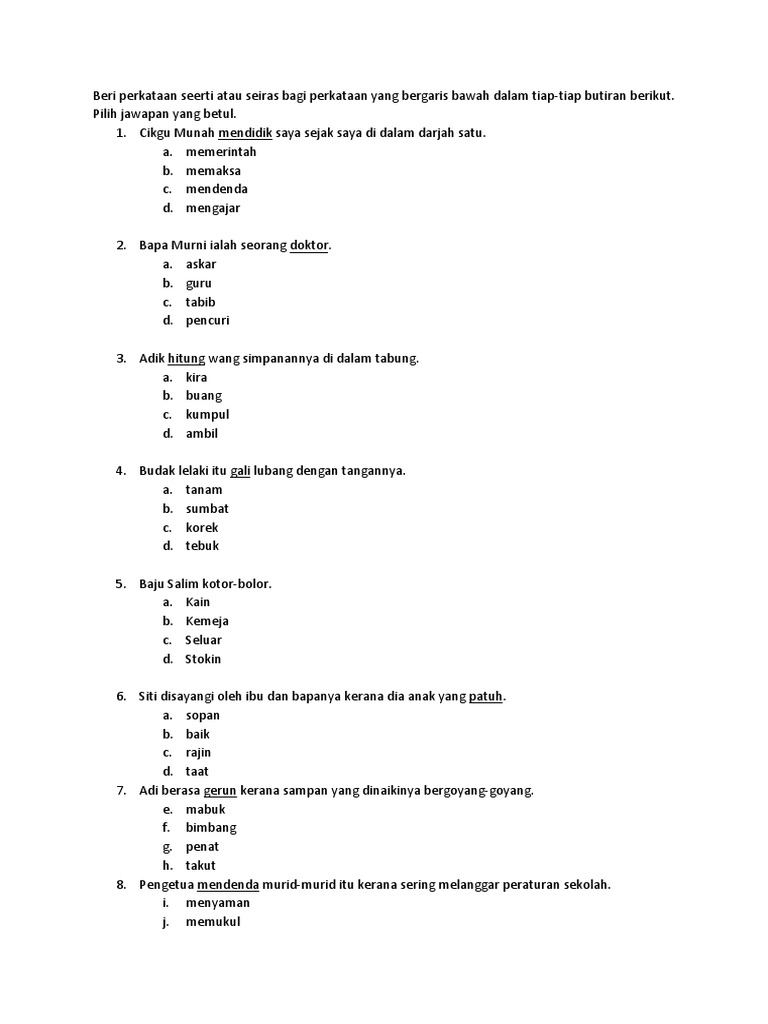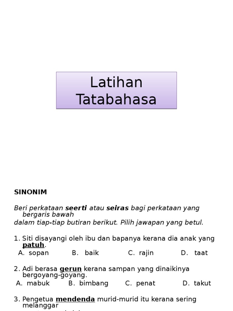 Latihan Tatabahasa Sinonim