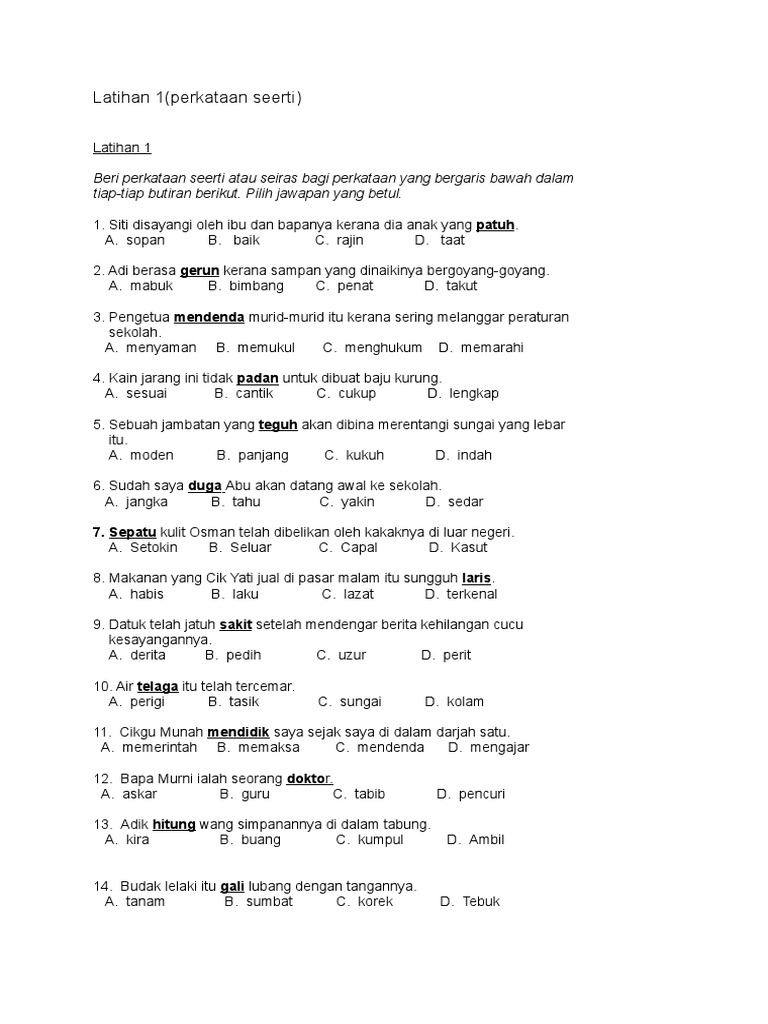 Latihan 1 Kata Seerti