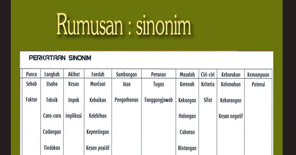 Sinonim Rumusan Antonim Rumusan Thesaurus Tesaurus