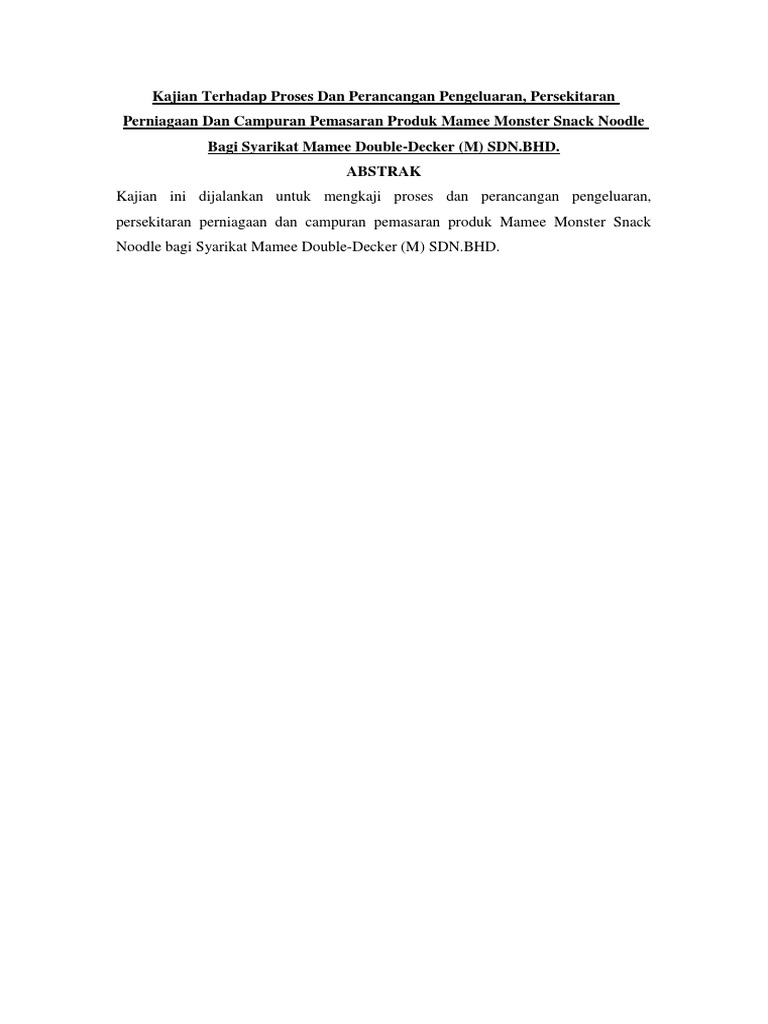Pengenalan Docx Tajuk Mengkaji Pengeluaran Persekitaran Perniagaan Dan Campuran Pemasaran Bagi Produk Mamee Monster Syarikat Mamee Double Decker Course Hero