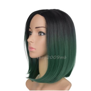 Wig Rambut Sintetis Pendek Lurus Warna Ombre Hijau Untuk Wanita
