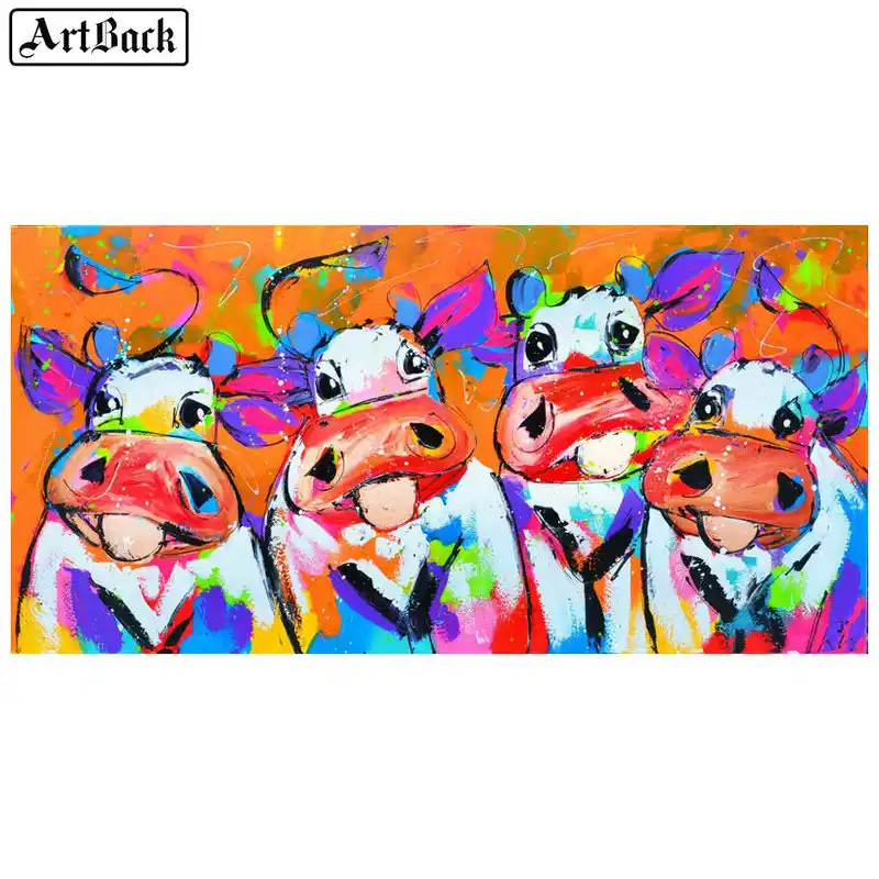 Diy Lukisan Diamond 5d Dengan Gambar Kartun Sapi Warna Warni Untuk