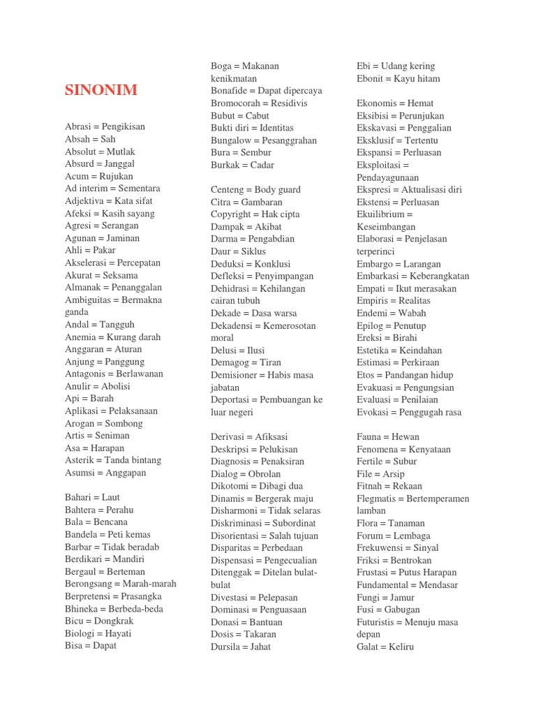 Sinonim perkataan evokasi. Tetap bersyukur dan ingat tuhan karena hidup di dunia ini sementara sedangkan di akhiran itu abadi sinonim kata abadi adalah kekal. Daftar sinonim dapat ditemukan di tesaurus. Sinonim adalah kata yang memiliki persamaan makna dengan kata lain. Huk pengalihan pemeriksaan orang asing dari pengadilan kepada instansi lain.