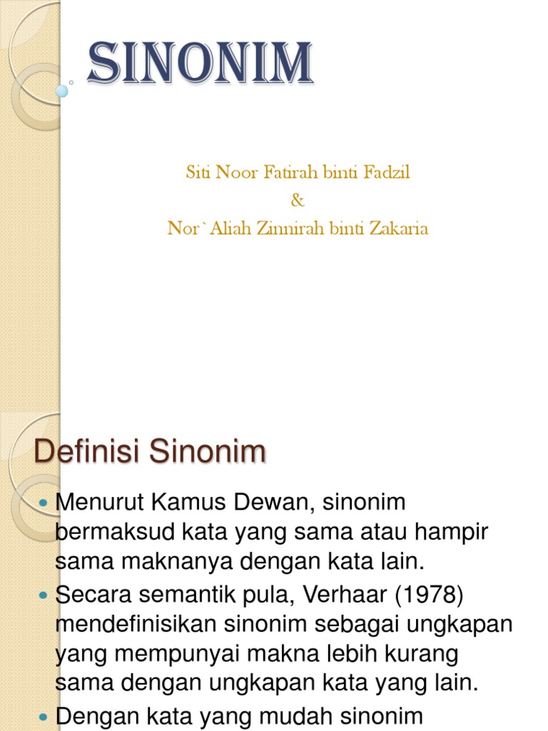 Si no nim سينونيم definisi. Tinggal masukkan kata yang ingin anda cari artinya ke dalam kotak di atas. Gemilang bermaksud bercahaya terang benderang juga sinonim kepada cemerlang. Anda dapat mencari sinonim antonim dan bentuk lain dari suatu kata baik bahasa inggris maupun bahasa indonesia.
