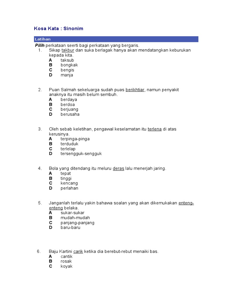 contoh perkataan sinonim dalam rumusan