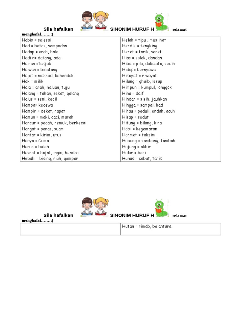 Sinonim Huruf H
