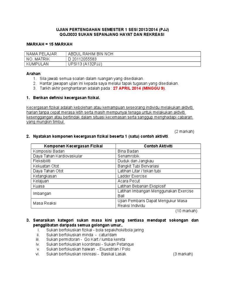 Ujian akan ditamatkan jika murid tidak melakukan aktiviti secara sempurna mengikut arahan 1 hingga 3. Salah satu senaman kegemaran tekan tubi push up yang selalu saya lalukan dalam setiap latihan. Ianya boleh menampilkan susuk badan yang lebih menarik membina otot bahagian atas torso dan lengan. Berhenti apabila siku melengkung hingga 90 darjah.