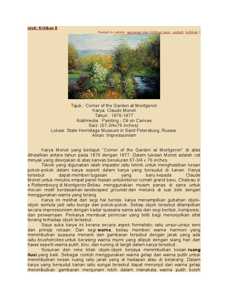 Doc Apresiasi Dan Kritikan Karya Claude Monet Prof Najri