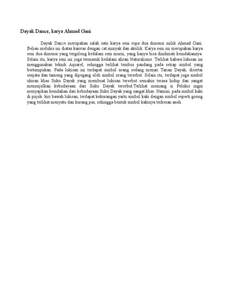 Unsur Rupa Yang Menonjol Dalam Lukisan Dayak Dance Karya Achmad Gani Brainly Co Id