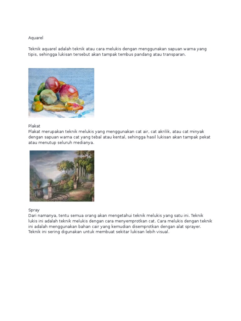 Teknik Teknik Dalam Melukis Pengertian Teknik Teknik Dalam