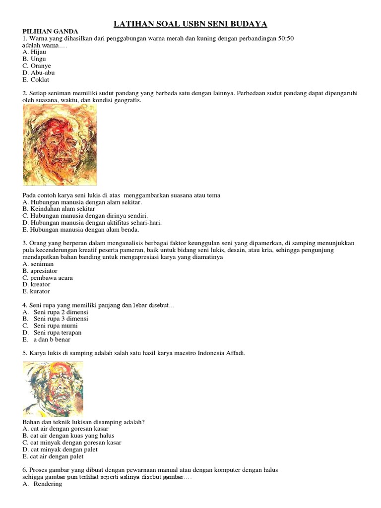 Kisi Kisi Soal Dan Kunci Jawaban Seni Budaya Smp Kelas 7 Semester